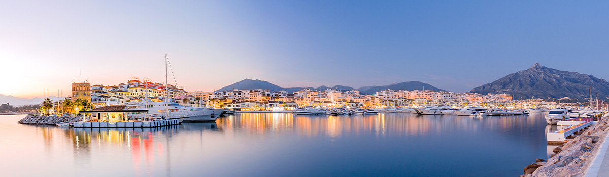 Marbella ist eine Großstadt in der andalusischen Provinz Málaga an der Costa del Sol. Die Stadt ist nur 33 Kilometer vom Flughafen Málaga entfernt, der von vielen deutschen Flughäfen aus angeflogen wird. Die Region kann dank ihrer Lage das ganze Jahr über gut bereist werden. Schon Anfang Juni ist die Wassertemperatur im Meer mit 20 Grad Celsius angenehm zum Baden. Bekannt ist Marbella für sein exklusives Flair, die Zeit als Ziel des internationalen Jetsets und die vielen Boote und Yachten.